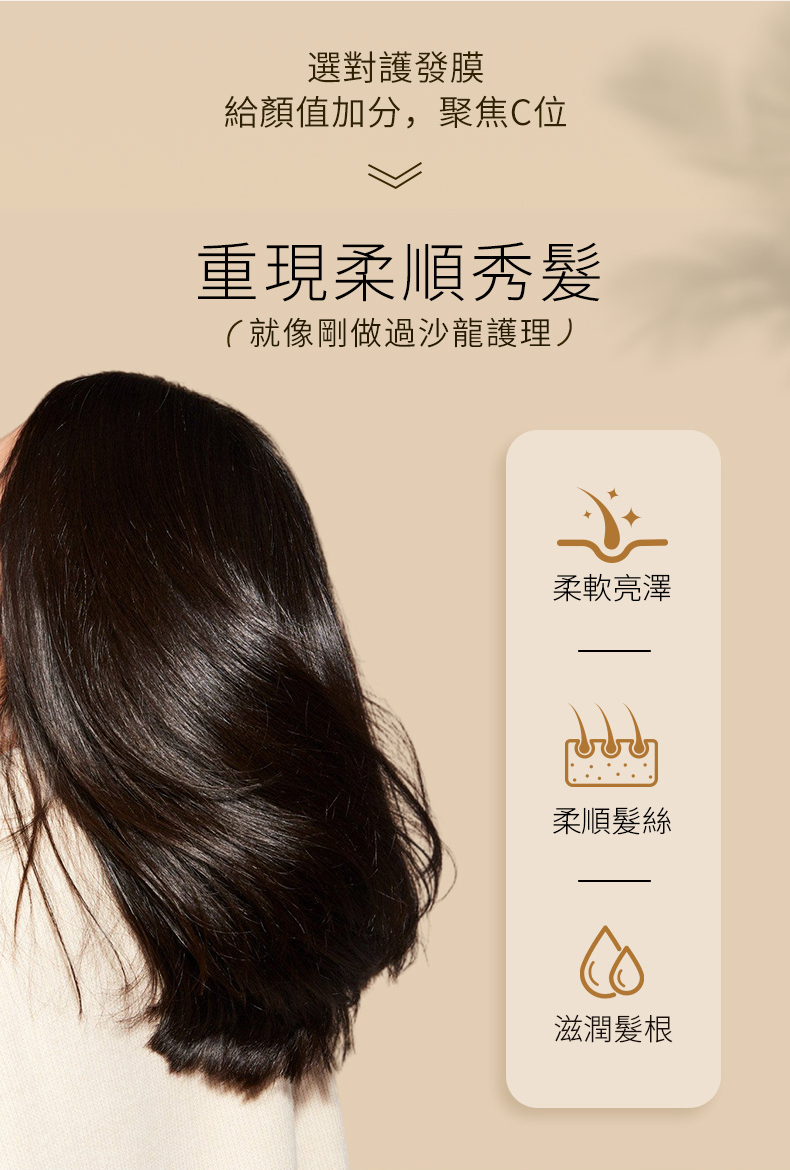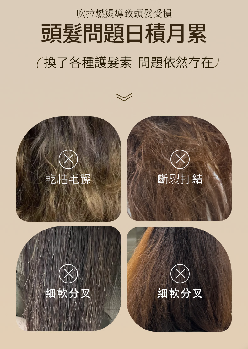適用人群 特別適合髮質乾燥、毛躁、脆弱易斷,以及因燙染導致受損、打結困擾的人群。對於追求頭髮強韌與光澤感的任何髮質使用者亦適用。