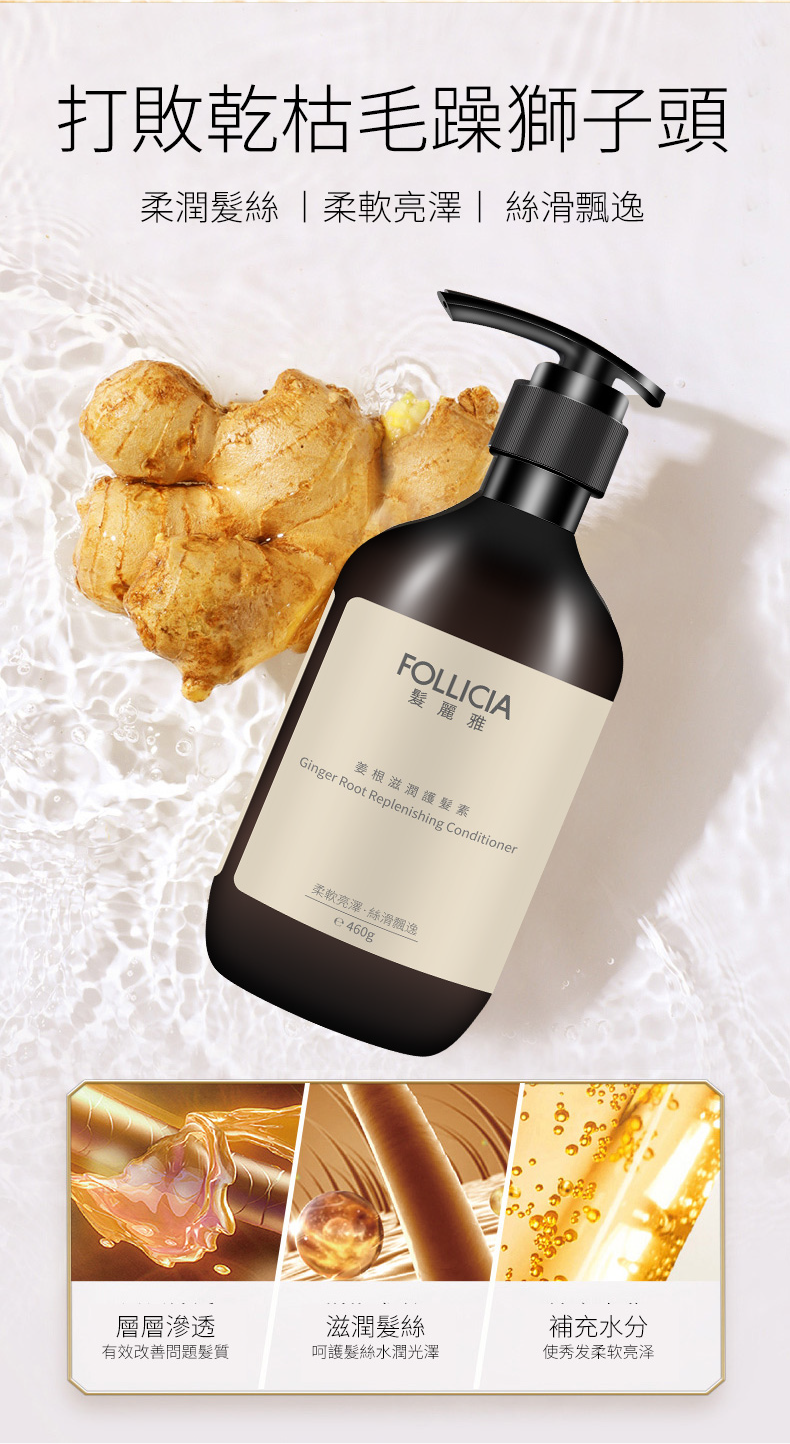 產品定位 一款以 “姜根滋養”為核心的高效修護型護髮素,專注於從根源為受損、乾枯髮質提供深層滋潤與強韌護理,幫助恢復秀髮的健康光澤與彈性。