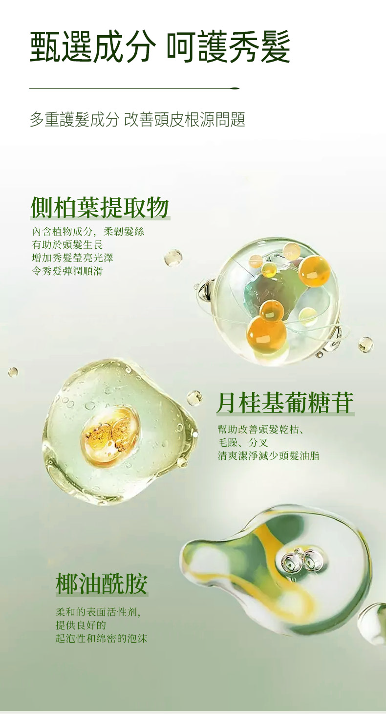 | 適用人群 | 特別適合髮絲細軟脆弱、易斷分叉、有脫髮困擾的人群;頭皮敏感、追求溫和清潔者;以及因燙染導致髮質受損、缺乏光澤與韌性的使用者。 |
