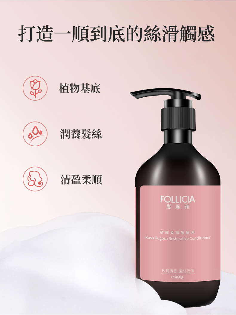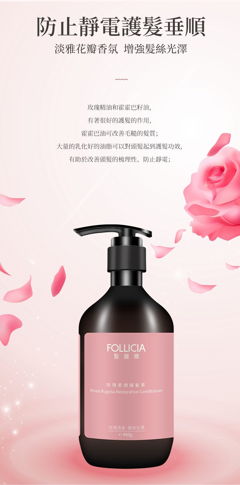 | 產品定位 | 一款專注於深層修護與日常順滑的高端植萃護髮素,以玫瑰精華為核心,針對性解決乾枯毛躁問題,旨在讓秀髮恢復柔軟、光澤與彈性。 |